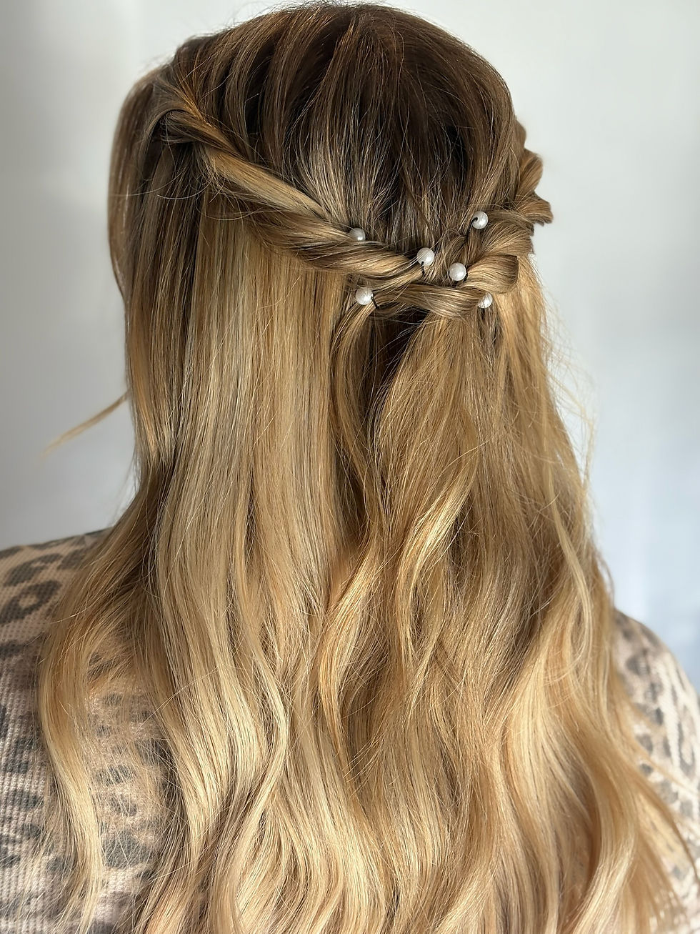 Style #3: A braided twist with decorative pearl bobby pins.